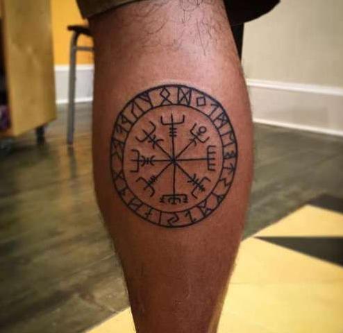 Big Black Ink Thigh Tattoo Of Big Mystical Symbol