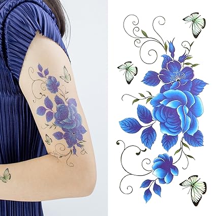 Oottati Women Floral Arm Chest Temporary Tattoo Blue