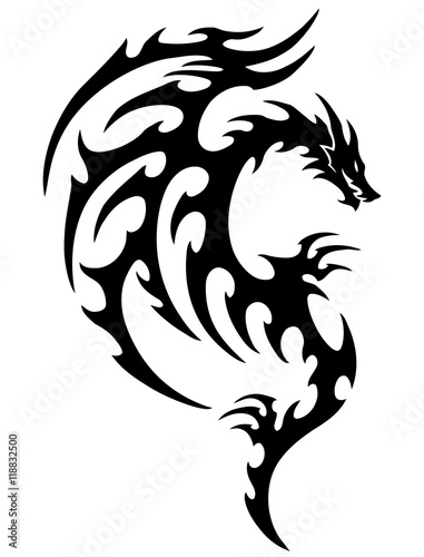Vector Illustration Tribal Dragon Tattoo Design Black And