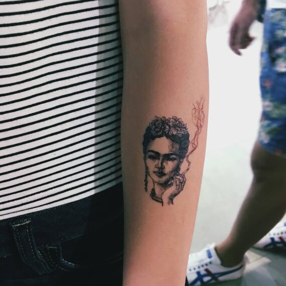 Frida Kahlo Tattoo Mexican Artist Portrait Tattoo Smoke Temporary Tattoo Sticker Floral Tattoo Fake Tattoo Tatouage Temporaire Quote Tattoo