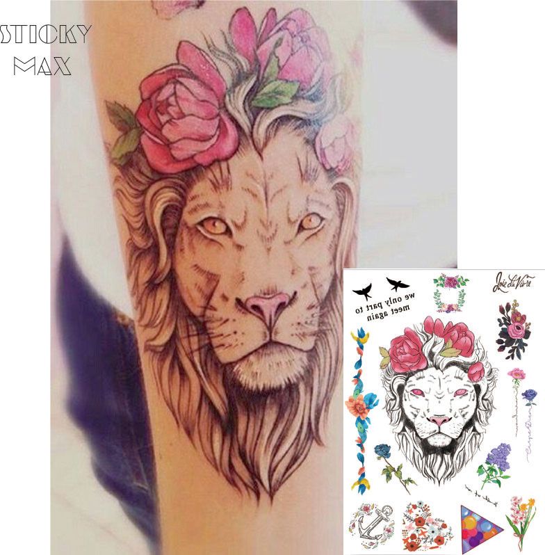 Nice Flower Lion With Crown Tattoo Golfian Com