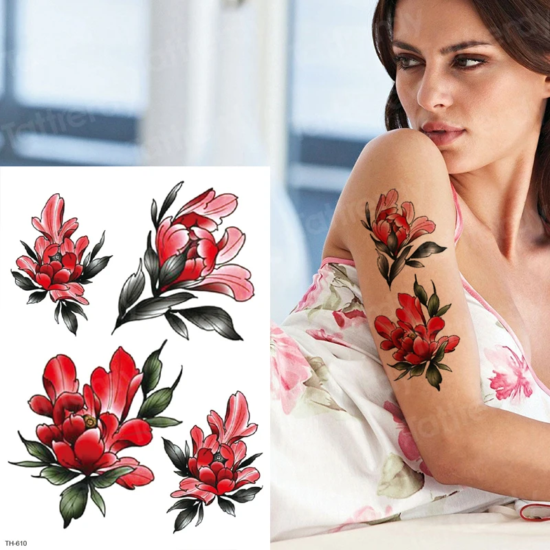 Temporary Tattoo Black Flower Tattoo Sleeves Water Transfer Tatoo Sticker Peony Rose Tattoos Body Art Sexy Tatoo Girl Arm Tatto