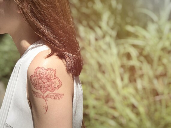 Temporary Tattoo Flower Henna Rose Peony Mehndi Leaf Stick On Transfer Fake Tattoo Realistic Bohemian Accessories Valentines Gifts For Her