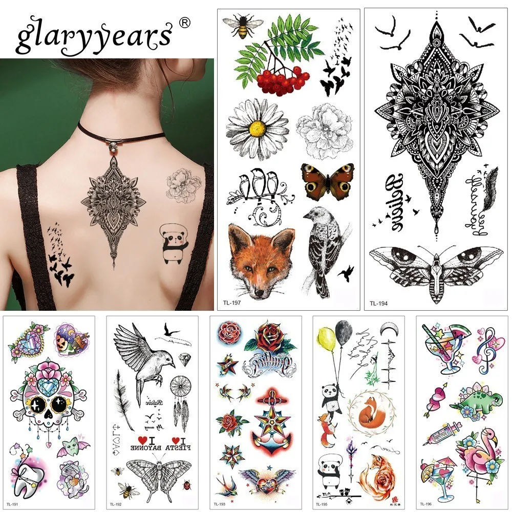 Us 0 69 30 Off Glaryyears 1pc Temporary Tattoo Sticker Beautiful Fake Tatoo Animals Flash Tatto Waterproof Small Body Art Men Women 25 Designs In