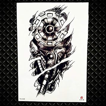 Black 3d Sexy Fake Transfer Tattoo Chest Clock Tatoos For Men Temporary Large Mechanical Arm Tattoo Sticker Women