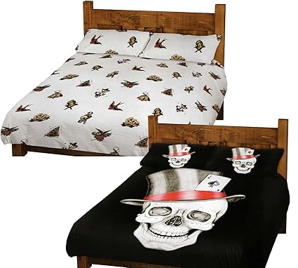 Gothic Skull Ace Of Spades Sailor Jerry Tattoos Reversible Duvet Cover Set King