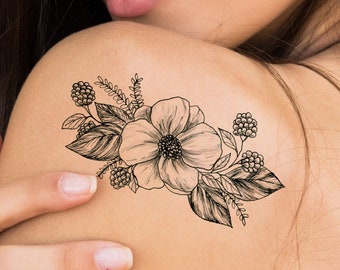 Big Floral Temporary Tattoo Fake Tattoo Vintage Hipster