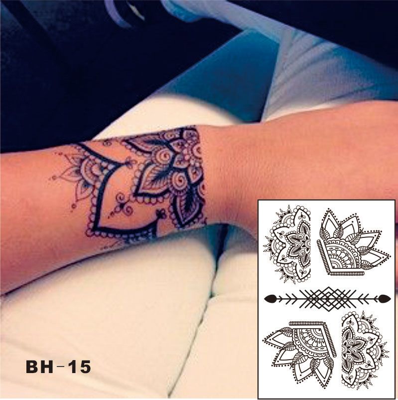 Bh 15 Beautiful Half Lotus Black Henna Temporary Tattoo With Arrow Pattern Inspired Body Sticker Long Temporary Tattoos Make Custom Temporary Tattoos