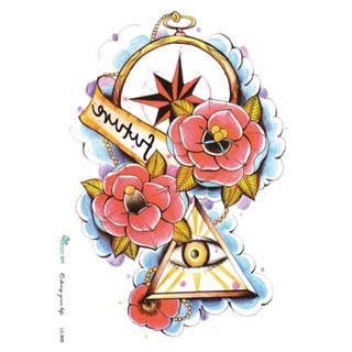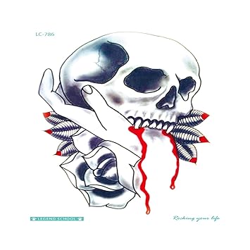 Lc805 Skull Design Temporary Tattoo Red Eye Flower Figure