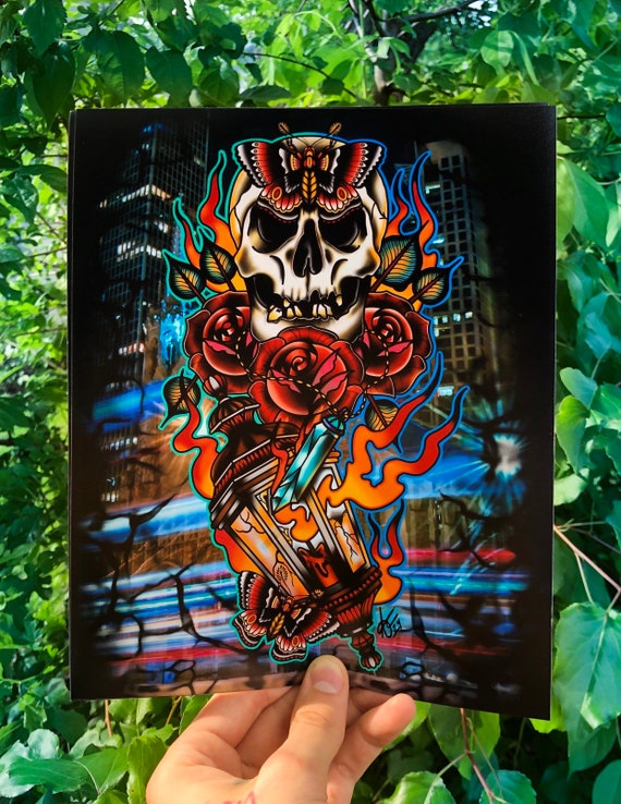 Skull And Lantern Tattoo Print