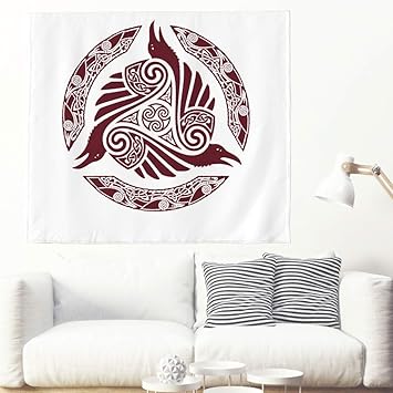 Amazon Com Red Tribal Raven Circle Runes Artwork Tapestry