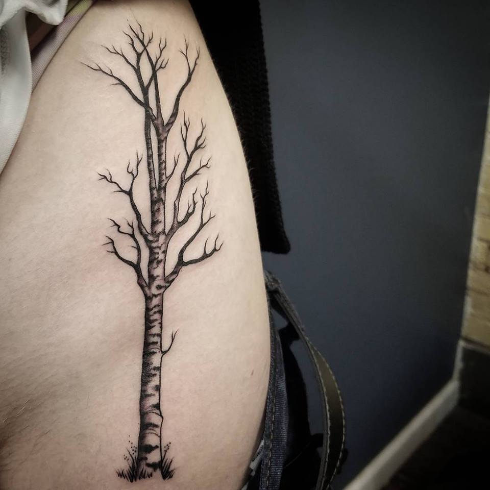 The incorporation of silhouettes is a predominant method for those who enjoy tree sleeve tattoos and the popularity of this approach stems from a desire to utilize black ink instead of green. I like the proportions. Generally a birch tree symbolizes renewal new beginnings rejuvenation and fresh starts.