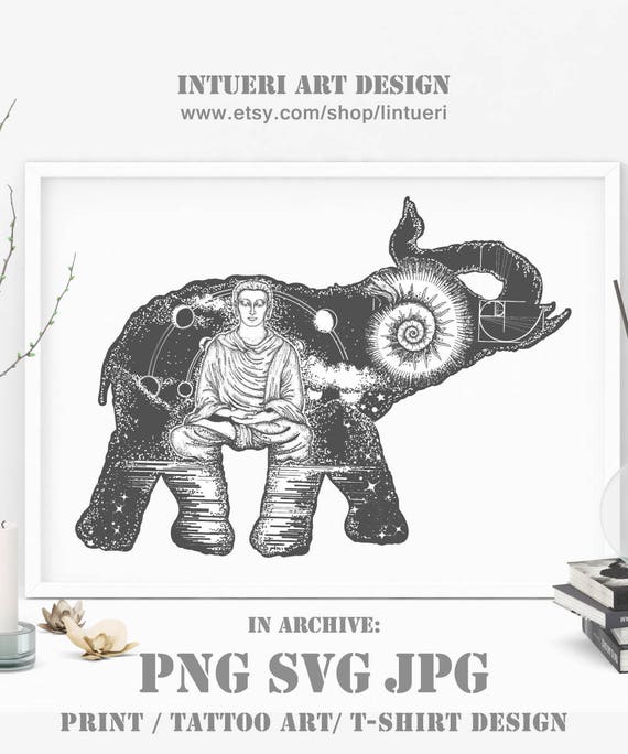 Elephant Svg Elephant Tattoo Art Symbol Of Spirituality Meditation Elephant Svg Buddha Mountains Elephant Double Exposure Png Svg