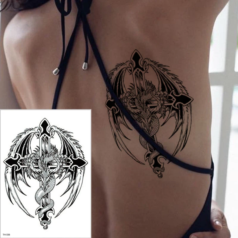 Us 2 21 30 Off 3pcs Lot New Flying Dragon Giant Wings Winding Cross Tattoo Stickers Arm Body Paint Tattoo Designs For Men Women Cool Designs In