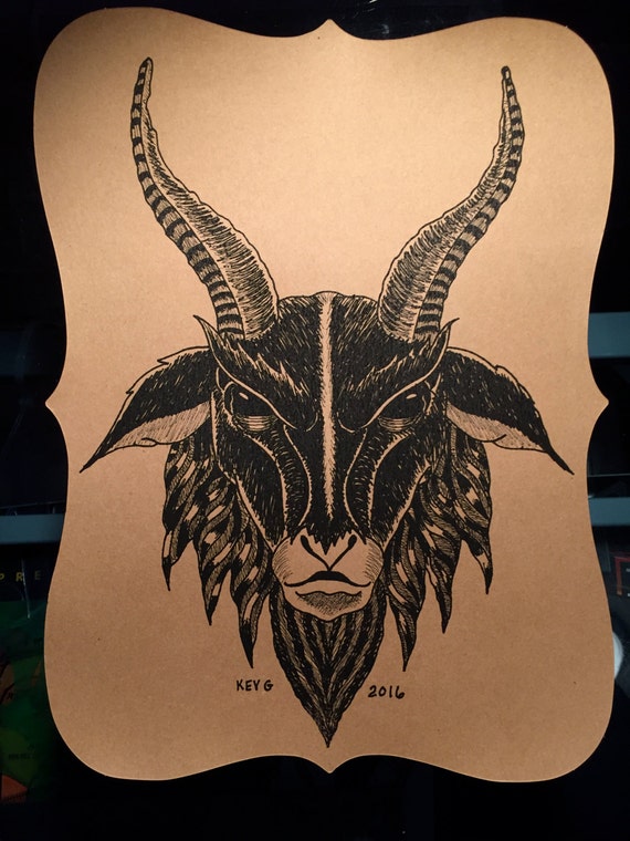 Baphomet Demon Goat Head Hand Drawn Print Or