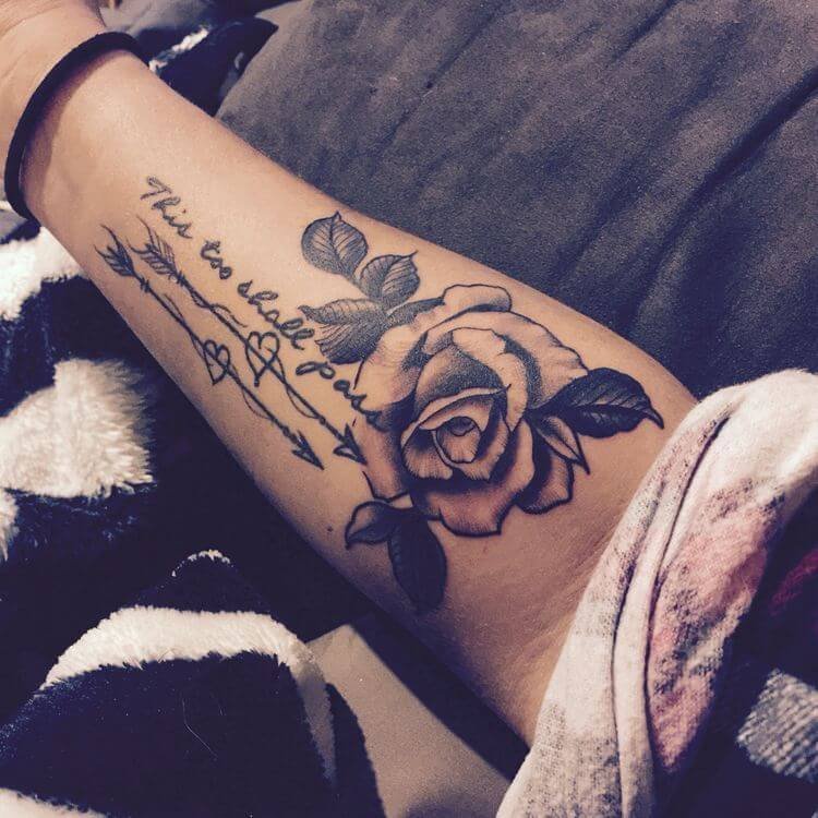 Each tattoo is unique for example with rose tattoos. Small rose tattoo with words on inner forearm. Check out these gorgeous rose designs for that something special whether youre a girl or a guy.