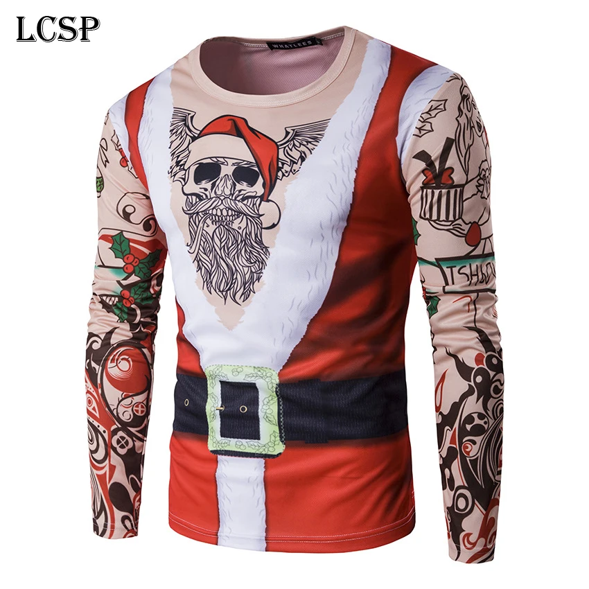 Us 12 34 35 Off Lcsp Novelty Man Santa Claus 3d Print Tattoo T Shirt 3d Printed Merry Christmas Men Long Sleeve Top T Shirt Clothes In Anime