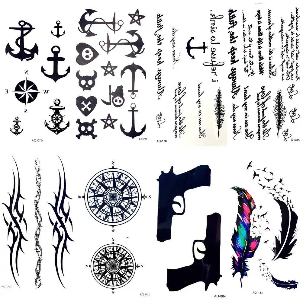 Us 0 98 39 Off Temporary Tattoos Pirate Tattoo Anchor Compass Tattoo Long Lasting Tatoo Sticker Words 3d Boys Tattoo Men Arm Tatto Sleeves Boys In