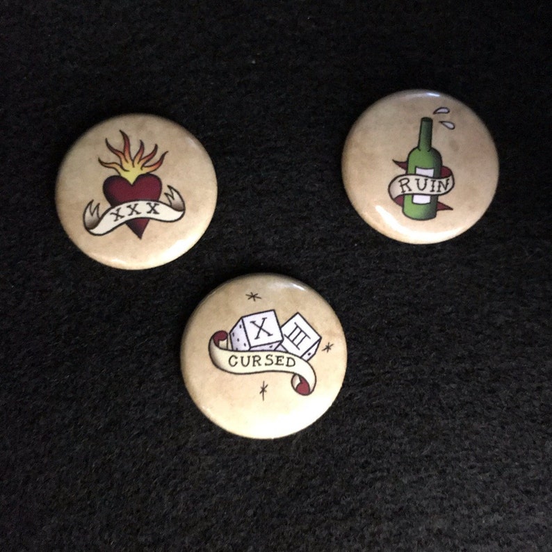 Tough Luck Tattoo Flash 3 Pack 1 Button Pins