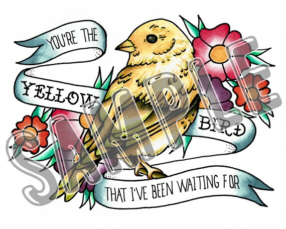 Bright Eyes Tattoo Flash Style You Re The Yellow Bird That I Ve Been Waiting For Lyrics Banner Watercolor Art Print