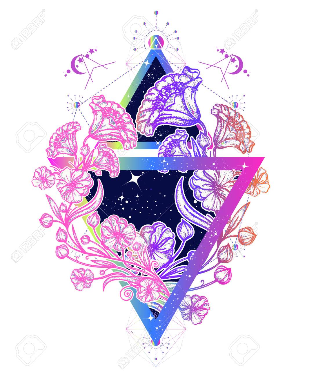 Flowers Art Nouveau In A Triangle Tattoo Art Graceful Flowers