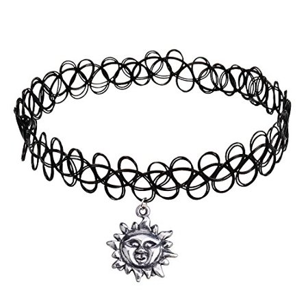 Art Attack Sizzling Sun Star Celestial Galaxy Black Stretch Tattoo Henna Choker Pendant Necklace