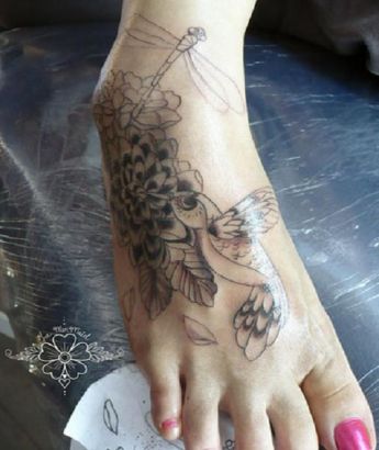 Hummingbird And Dragonfly Pic Tattoo On Feet