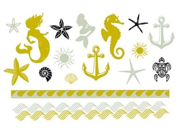 Metallic Beach Temporary Tattoo Set Mermaids Anchors Starfish Accessories Flash Tattoo Set Gift Includes Two 8 X5 Sheets 34 Total Tattoos