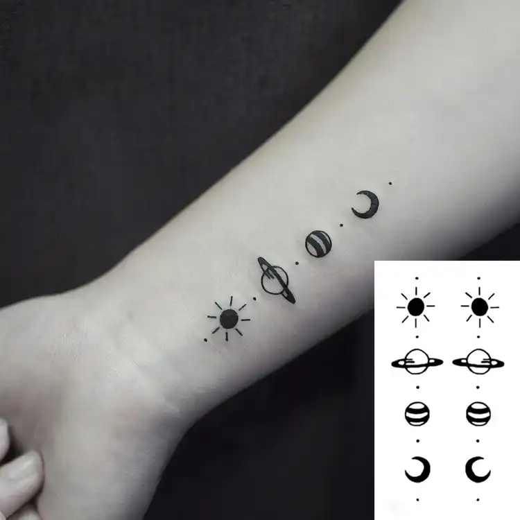 Water Transfer Tattoo Minimalist Small Sun Moon Tattoo Body