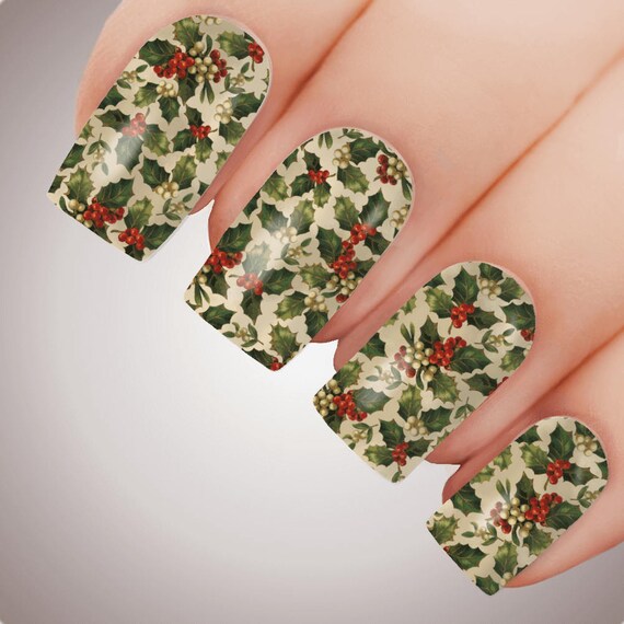 Traditional Holly Christmas Full Nail Art Decal Water Transfer Xmas Sticker Tattoo 5314