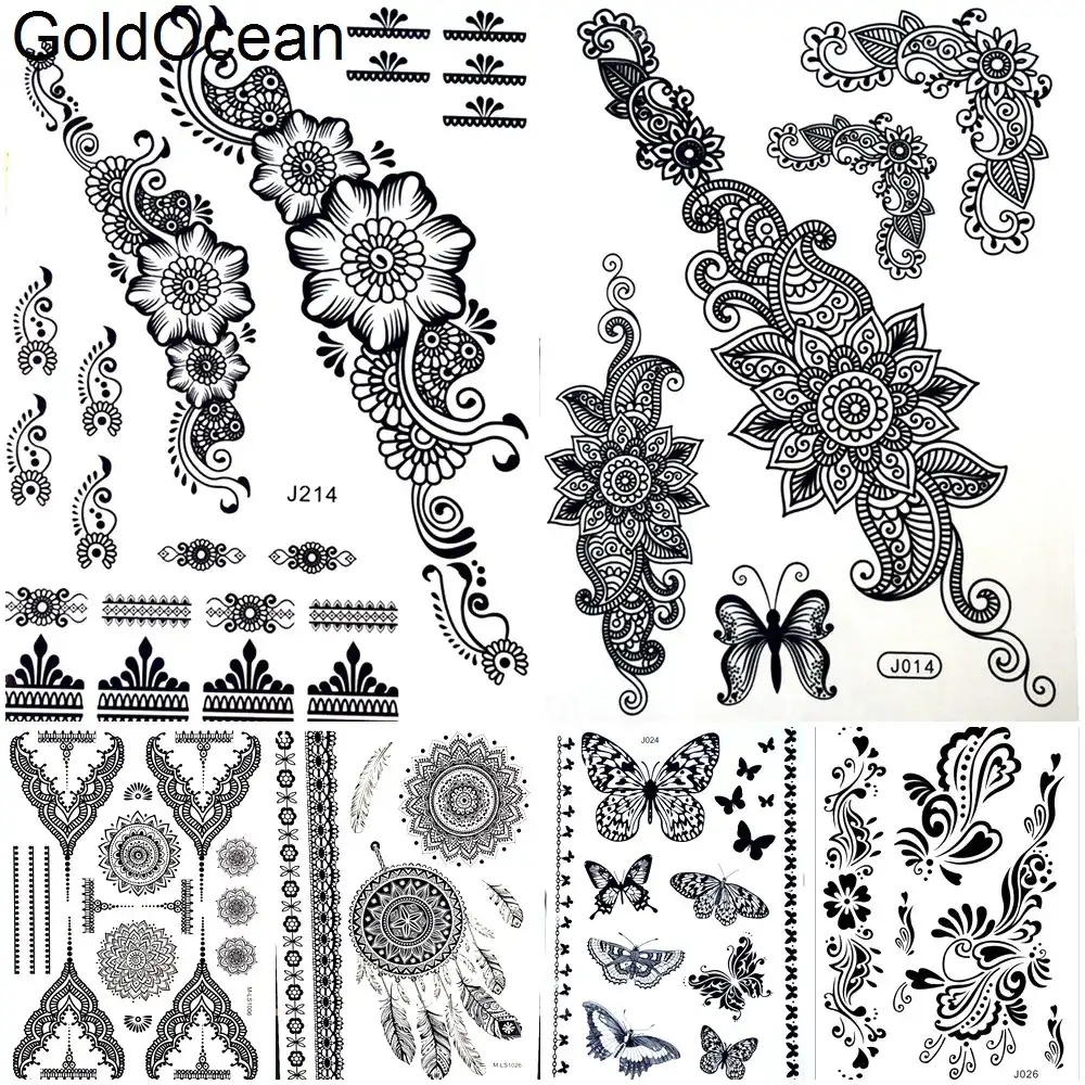 Hot Waterproof Black Henna Flower Temporary Tattoo Sticker Women Arm Leg Bracelet Fake Tattoo Wedding Wrist Tatoo Body Art Chain