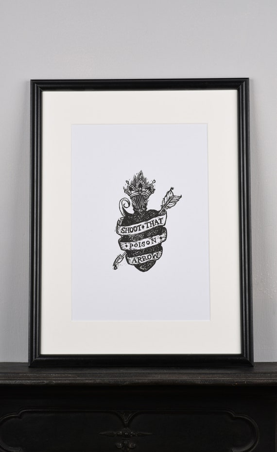 Sacred Heart Original Art Print Tattoo Style Poison Arrow Lyrics Gift 80s Cool Gift Lino Print Macabre