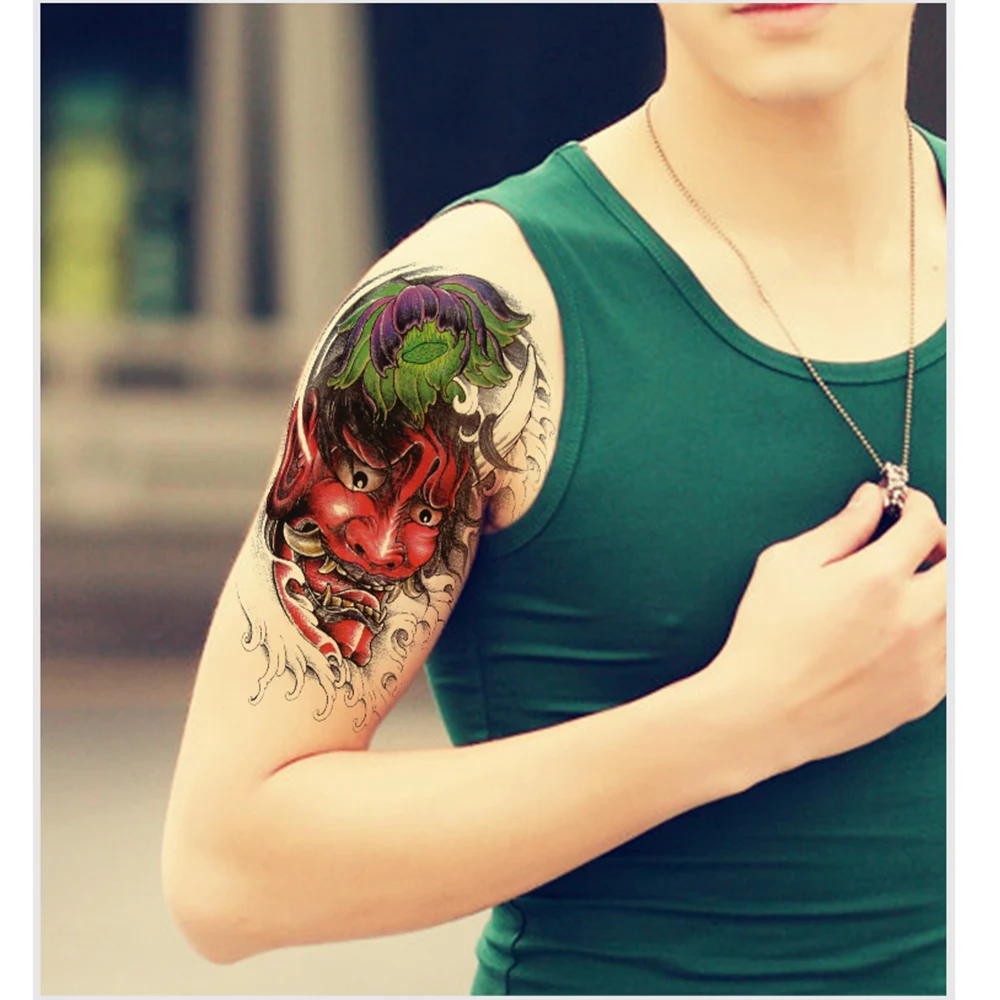 Ghost Pattern Men Fake Sleeve Tattoo Sticker Lotus Women