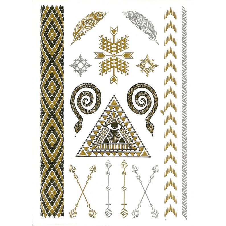 Temporary Metallic Tattoos In Gold Silver And Black Tattoos Flash Body Art Tatoo Jewelry Designer Arrows Native American Men Guys